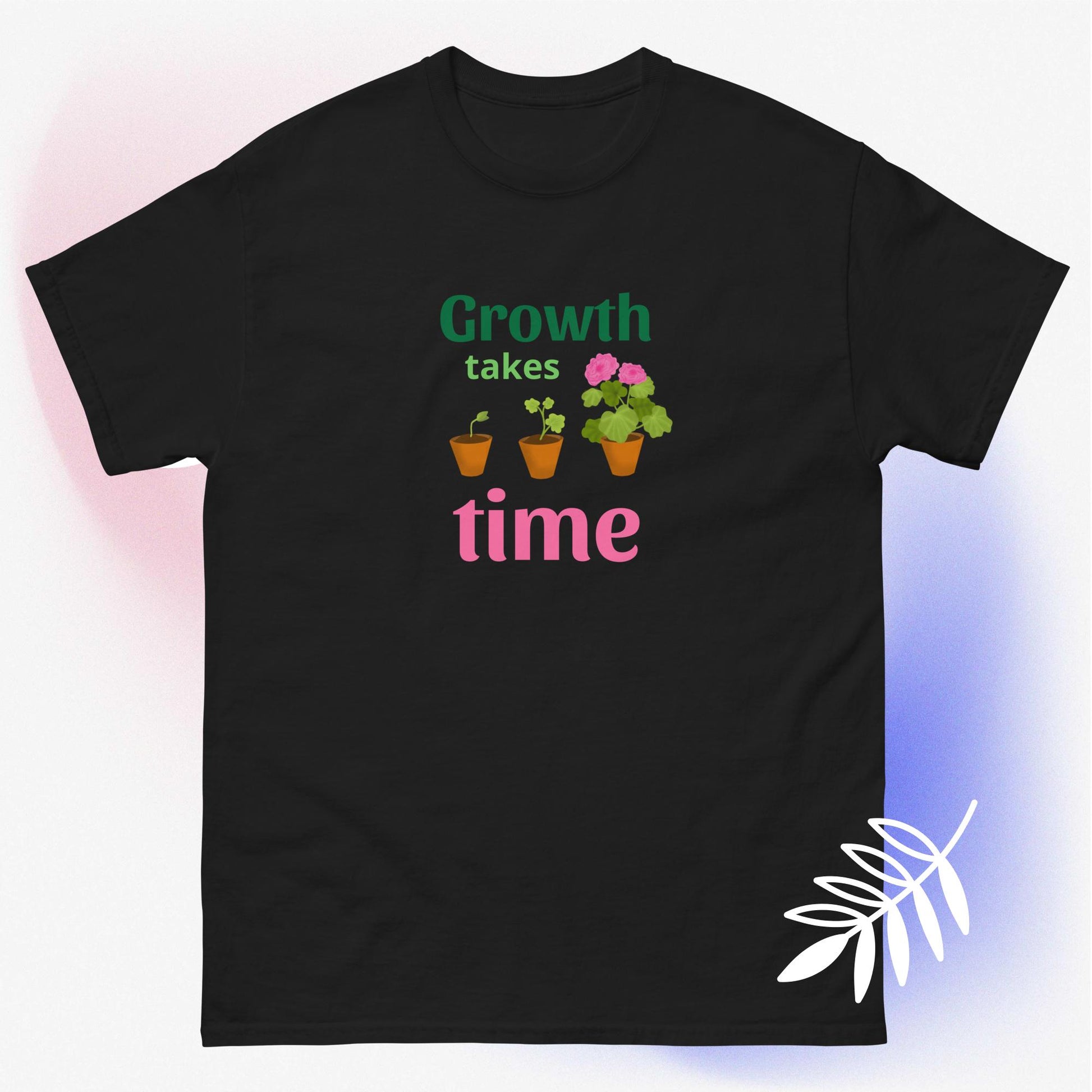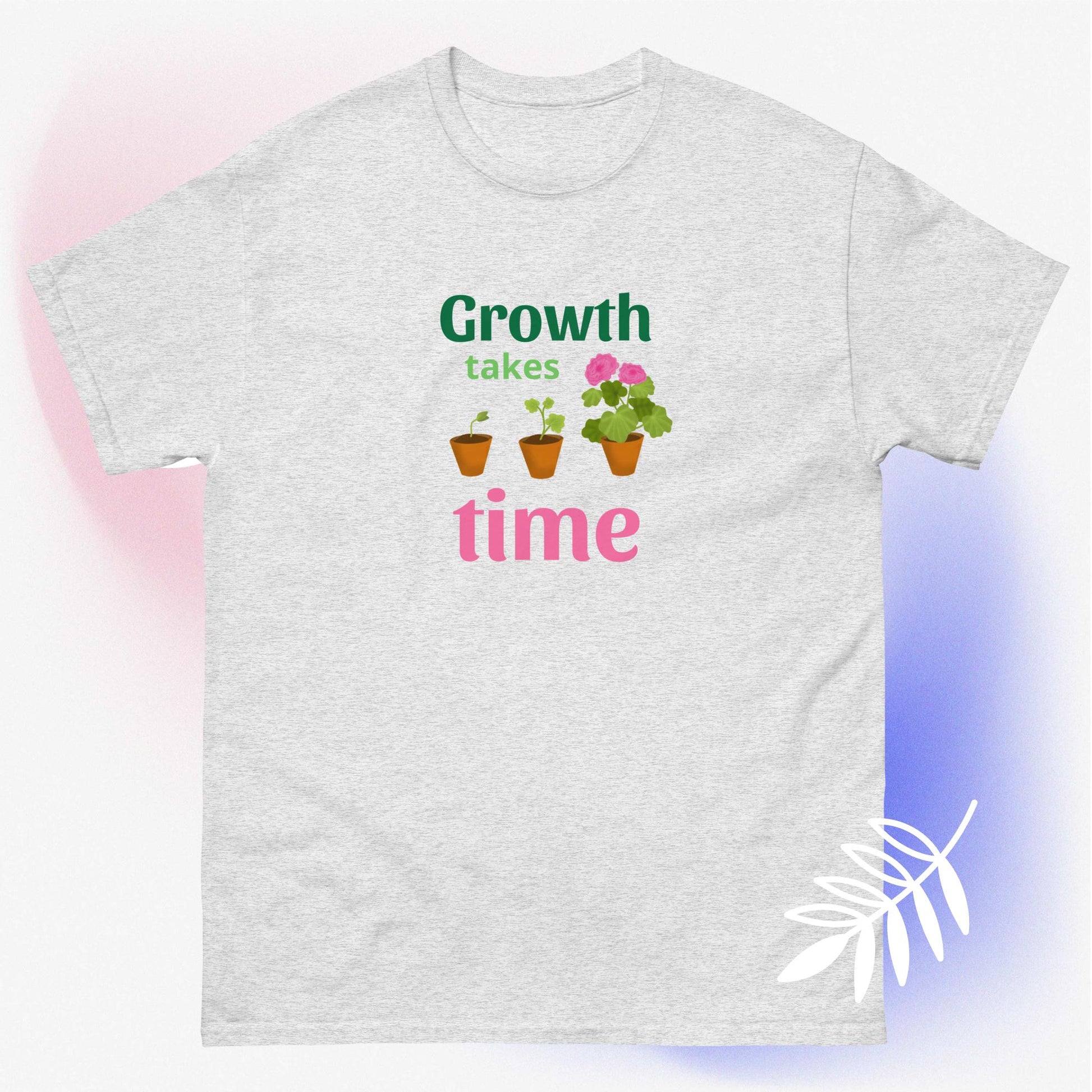 Growth takes time plant/flower growth graphic unisex t-shirt