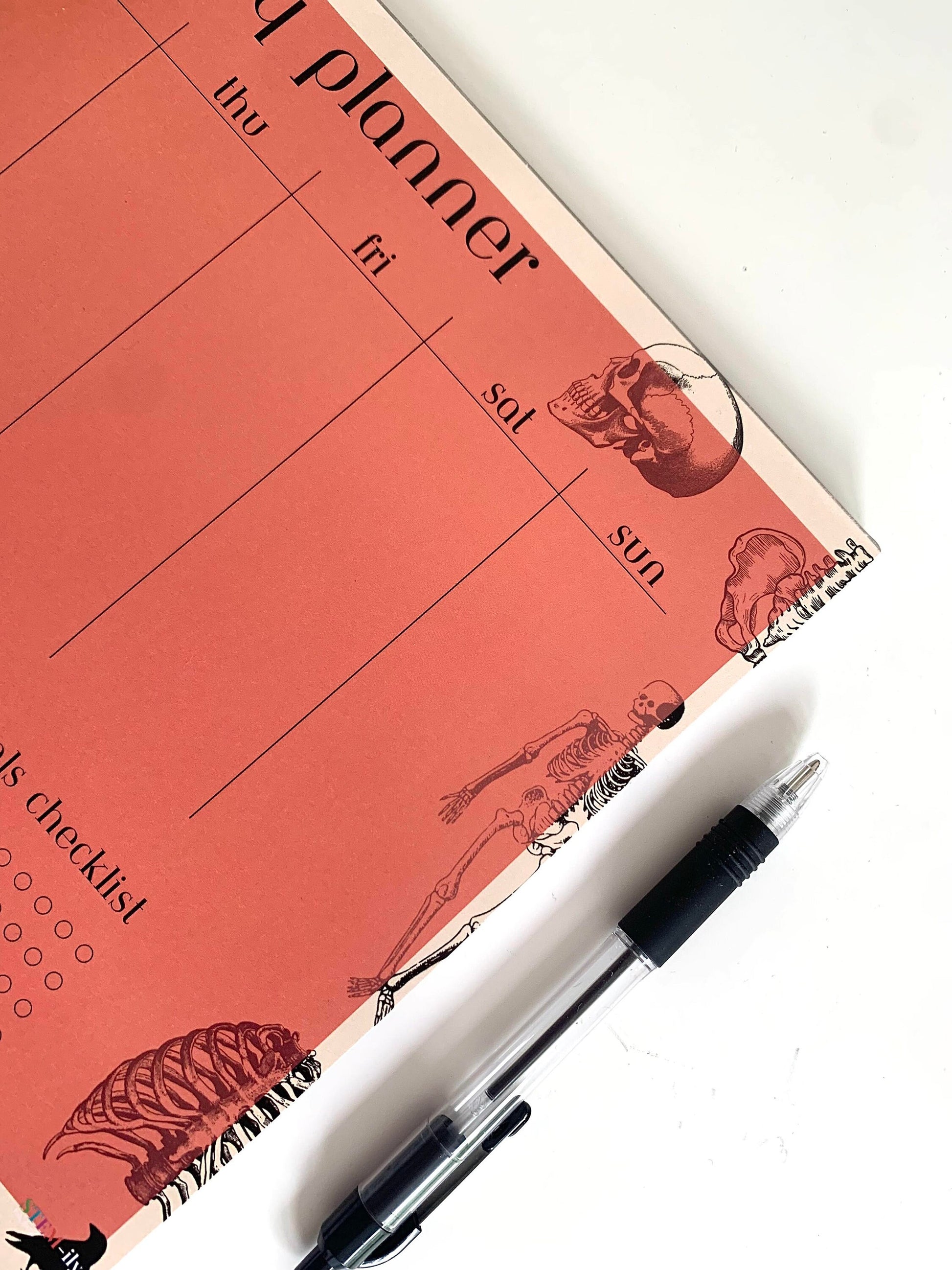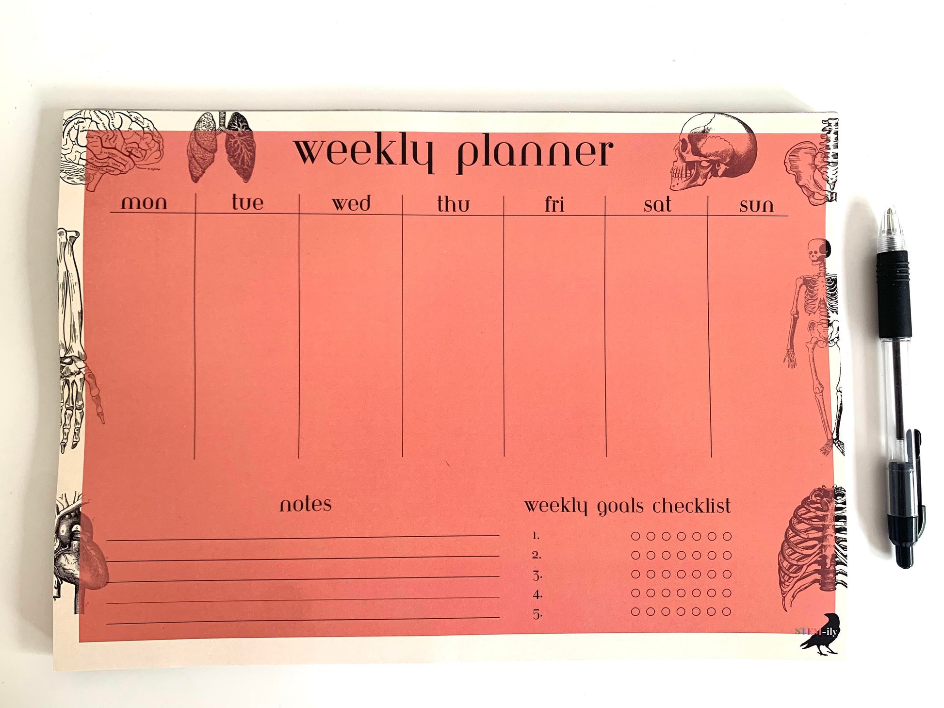 Red/ orange Anatomy Science weekly student planner note pad