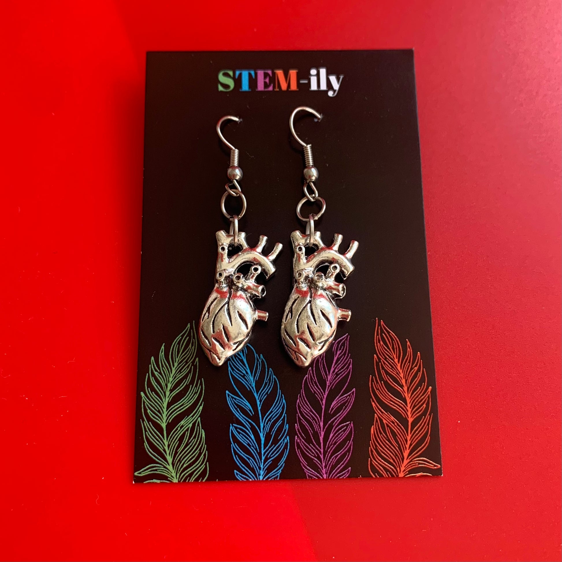 A cool pair of silver anatomical heart earrings! Perfect as a gift for fellow science lovers or a treat for yourself.